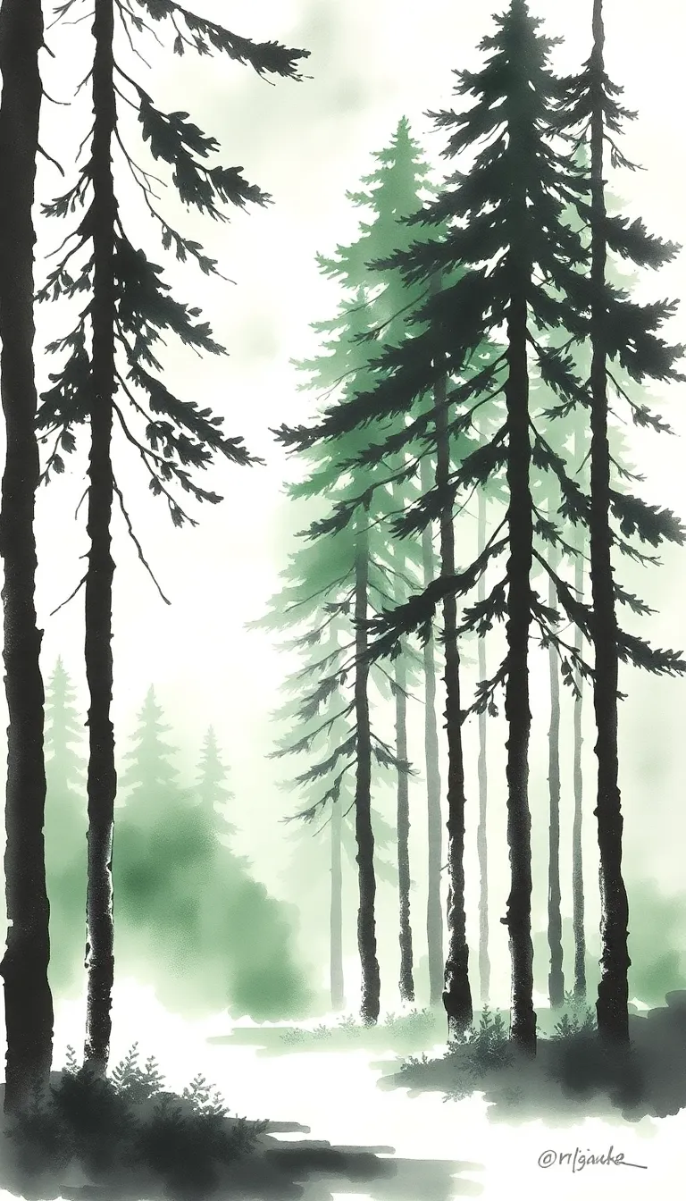 The pines stand tall, their whispers low,