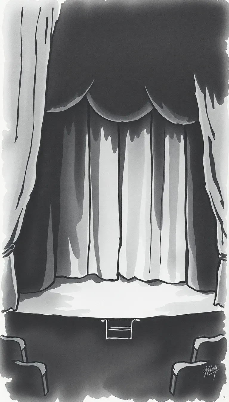 The specter replied not with words but with the soft, trembling rustle of a tissue, admiring the delicate inscription of regrets in the audience’s collective heart. In the silent dialogue of shared melancholy, each figure present understood that the theatre itself was a mirror to their own tormented existence.