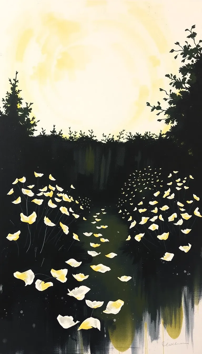 As night drew near, the garden transformed into a canvas of subtle shadows and muted silver gleams. The stars awakened overhead, timid and distant, like silent observers to the ephemeral spectacle below. In the gloaming, the flowers seemed to murmur amongst themselves—a chorus of fragile voices lamenting the transitory nature of their existence. And yet, in the midst of such delicate beauty, there pervaded an indescribable melancholy that clung to the air like a sigh, a tender remembrance of all that was fleeting.
