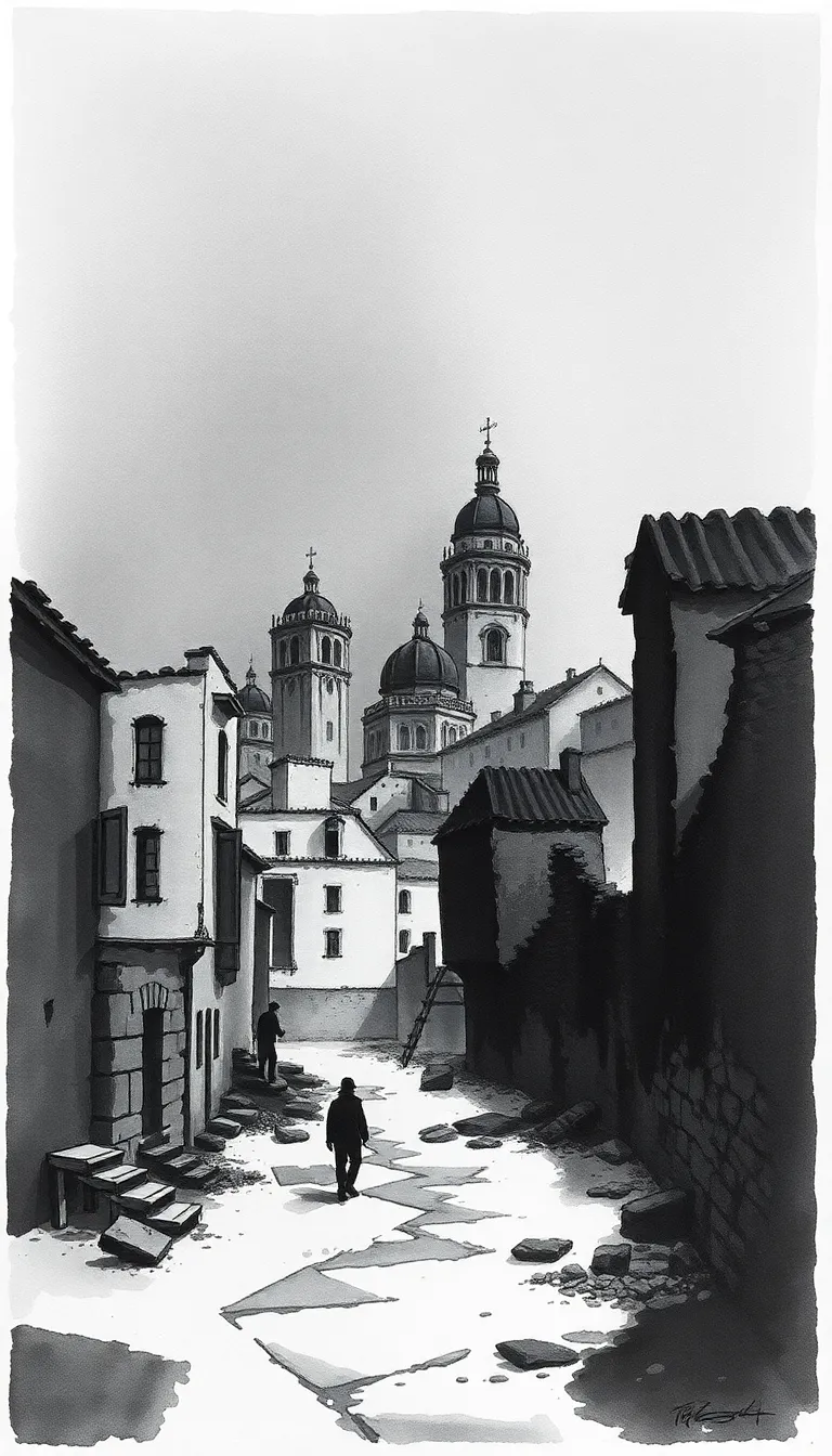 Each brick a tomb, each breeze a dirge, each step a weight of chains.