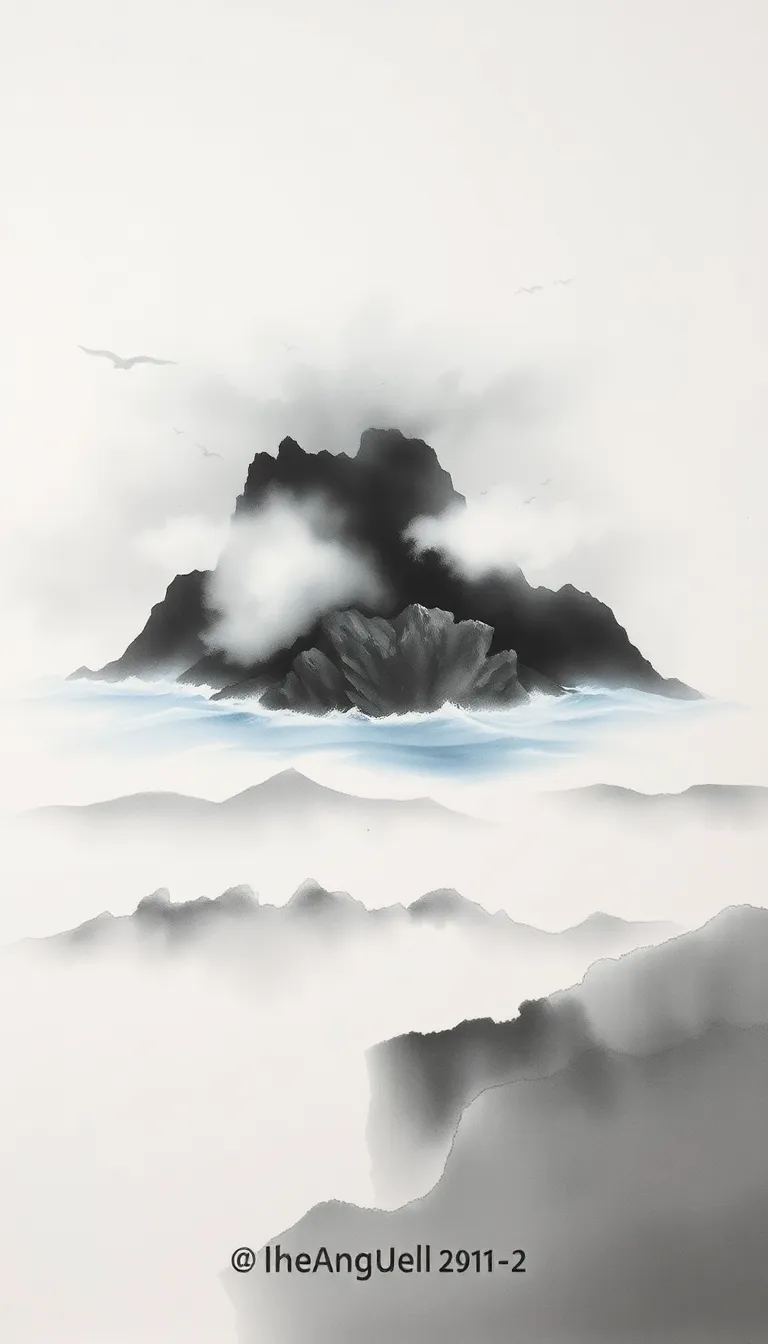 The island’s breath, a dirge of salt and pine,
