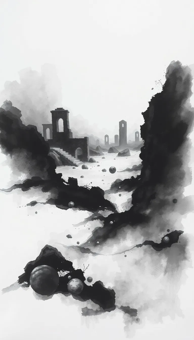 The city, now reduced to ghostly silhouettes and scattered relics,