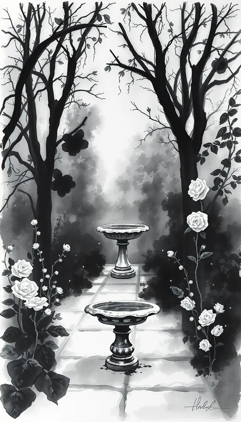 Roses, once crimson, now ashen and frail,