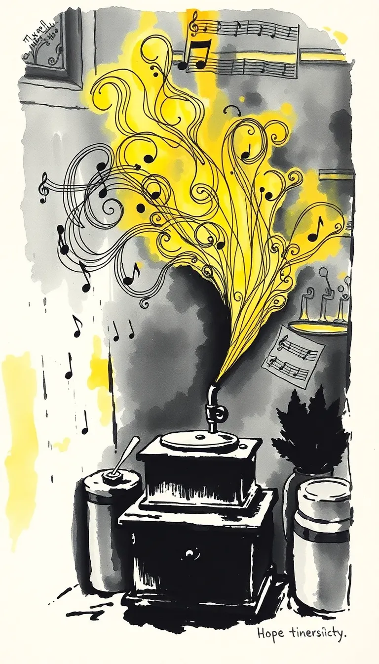 As the gramophone continued to hum its mysterious tune, the town outside began to stir. In the early morning mist, villagers emerged from their modest homes, their hearts buoyed by tales of an invention that birthed tenderness in the face of despair. The melodies, light yet profound, reached every humble abode, turning skepticism into wonder. The music traveled through cobbled lanes and narrow alleys, gently unfurling a cascade of generous gifts through the very air.